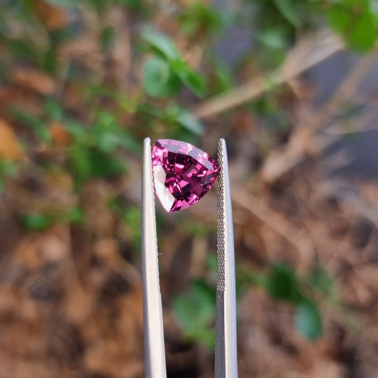 Certified 2.74 Rhodolite Garnet Precision Cut Trillion from Tanzania