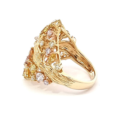 Unique Gold Ring With Fancy Shape and Fancy Colour Diamonds