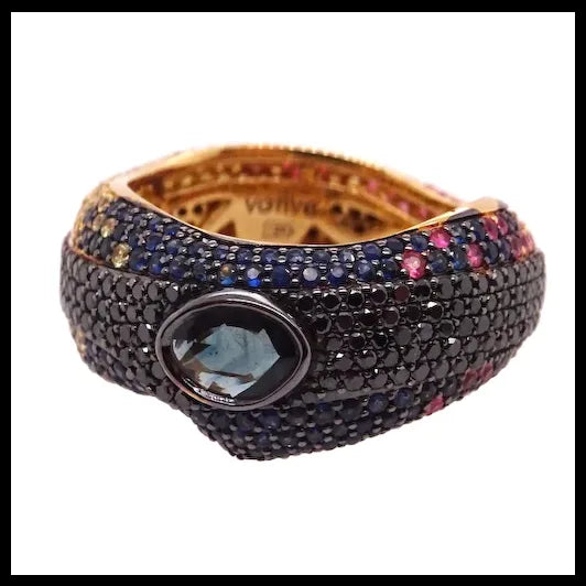 18k Gold Hawaiian Cleaning Wrasse Ring with Diamonds and Sapphires