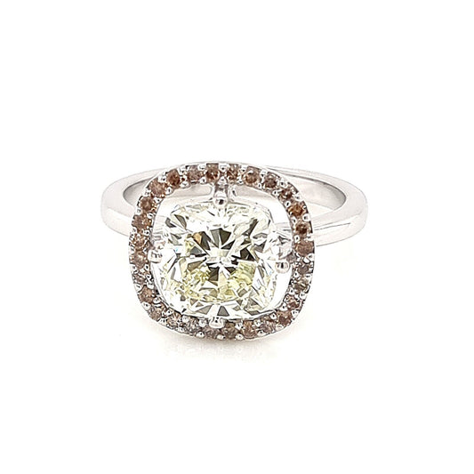 18K Gold Ring with Light Yellow Cushion Centre Diamond and Accent Brown Diamonds